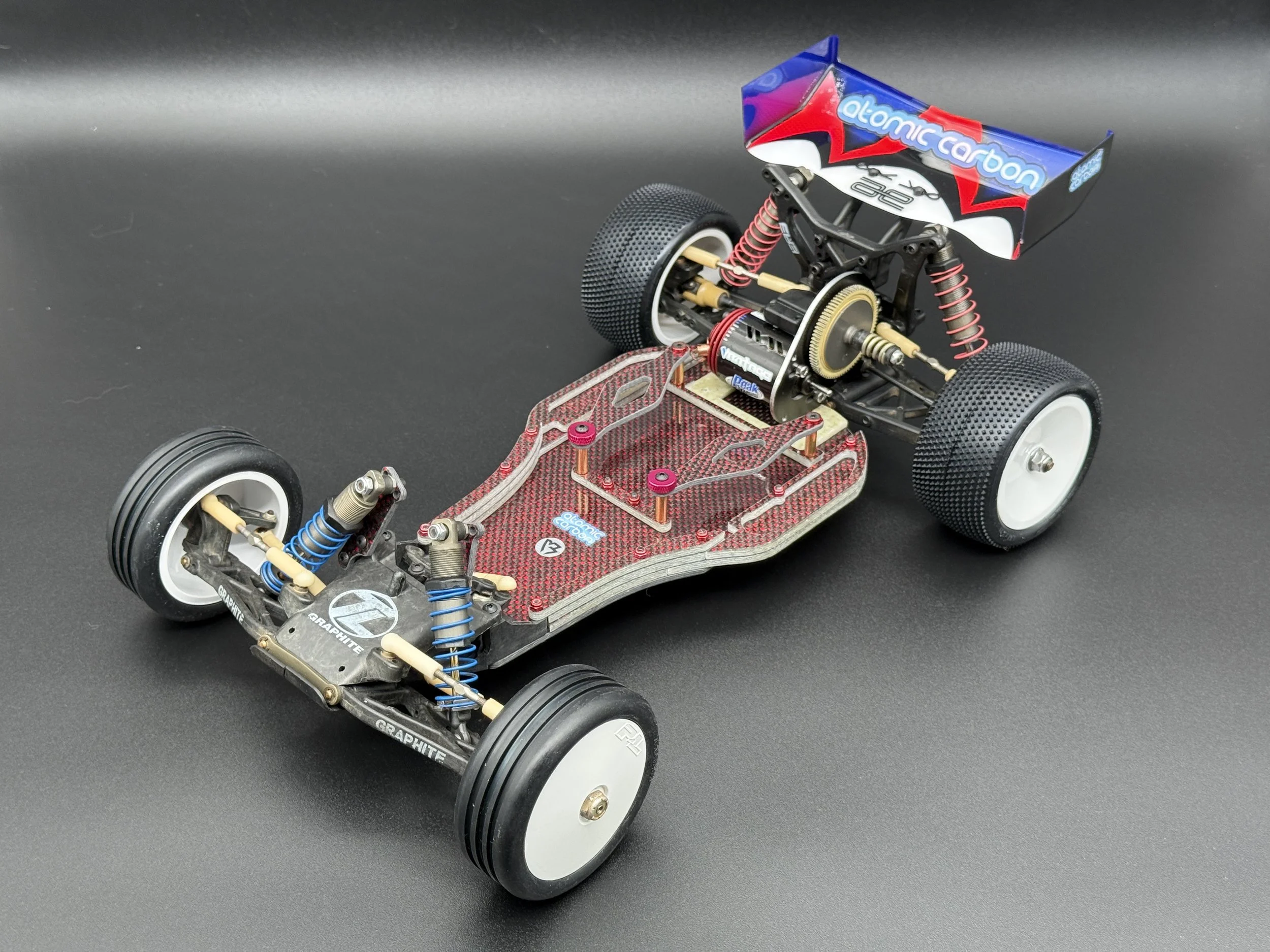 Accurate reproduction of ATOMIC CARBON exclusive and very limited red composite mid-motor conversion for the LOSI XXX-CR.