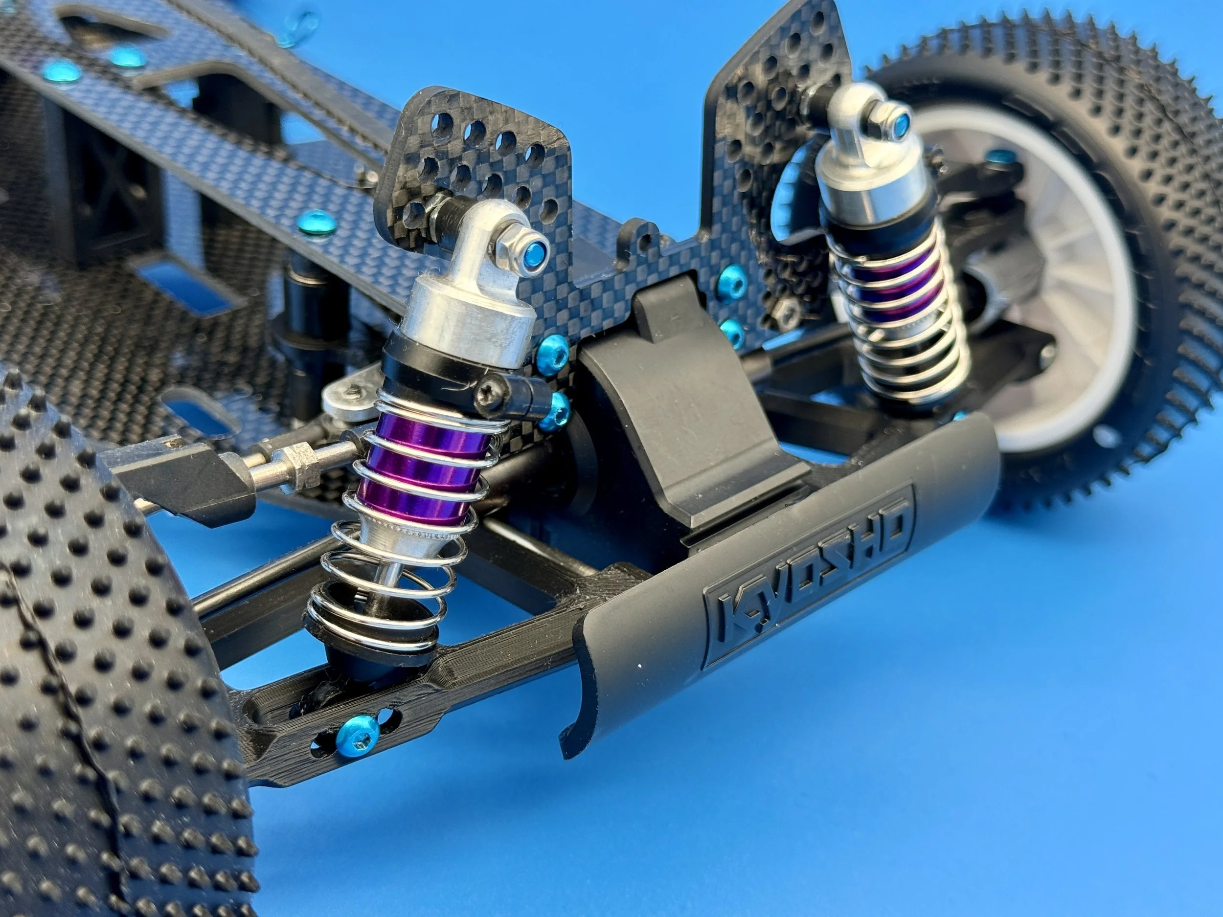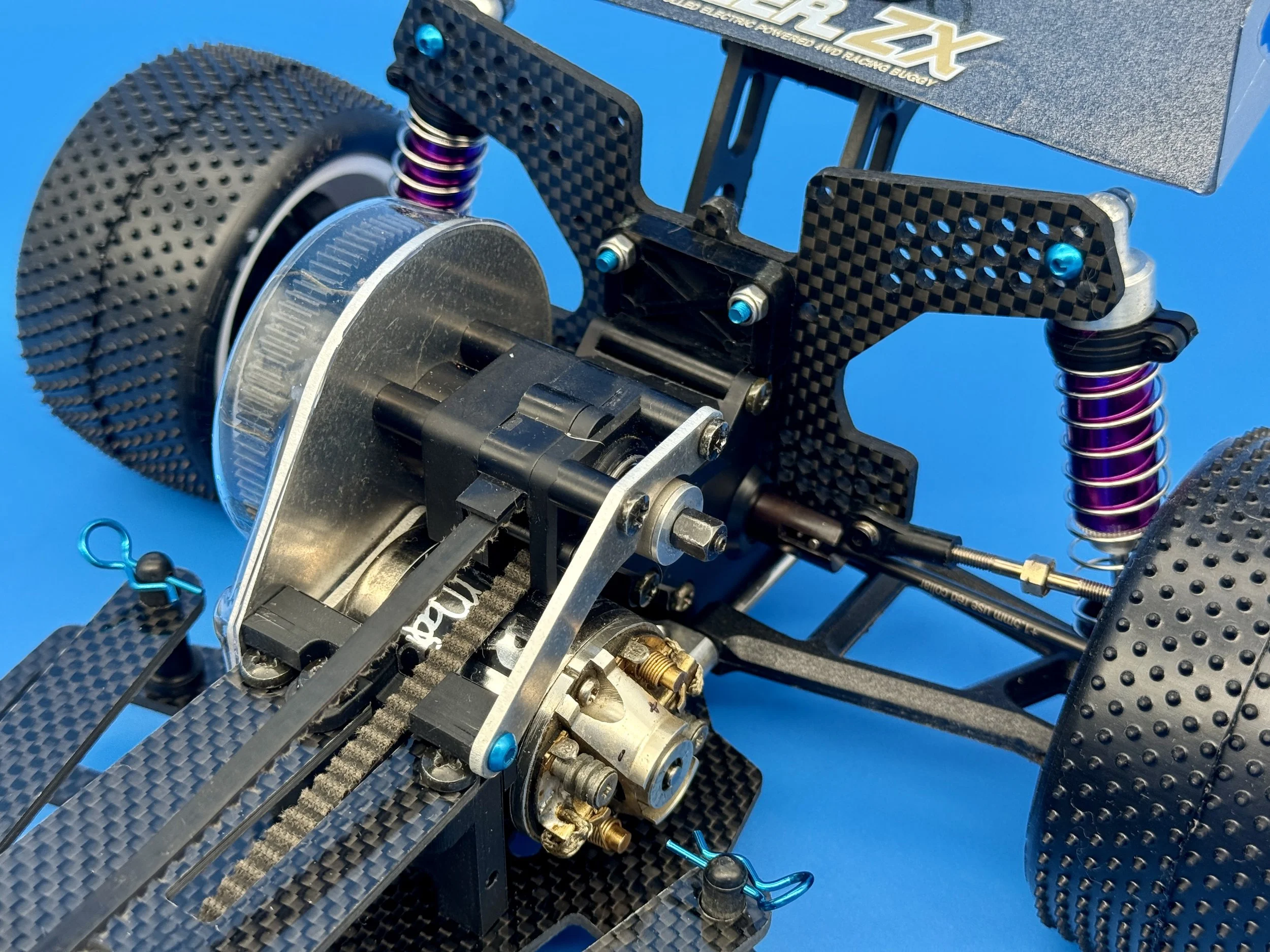 Another bin rescue with a full makeover, including WASP chassis, “Legend” style shock towers, Trinity arms and Trinity purple shocks. Blue alloy screws and trinity alloy bell motor for the final touches.