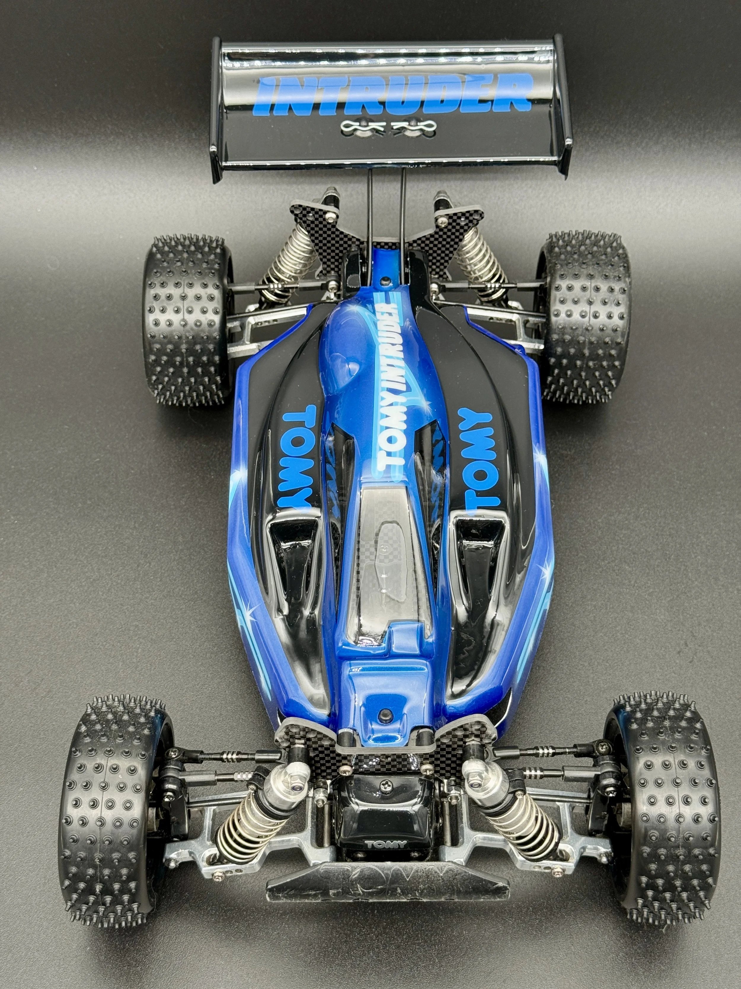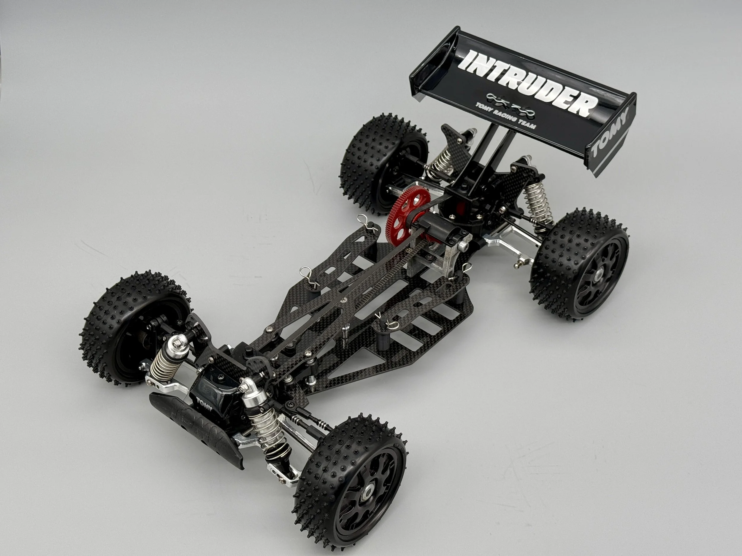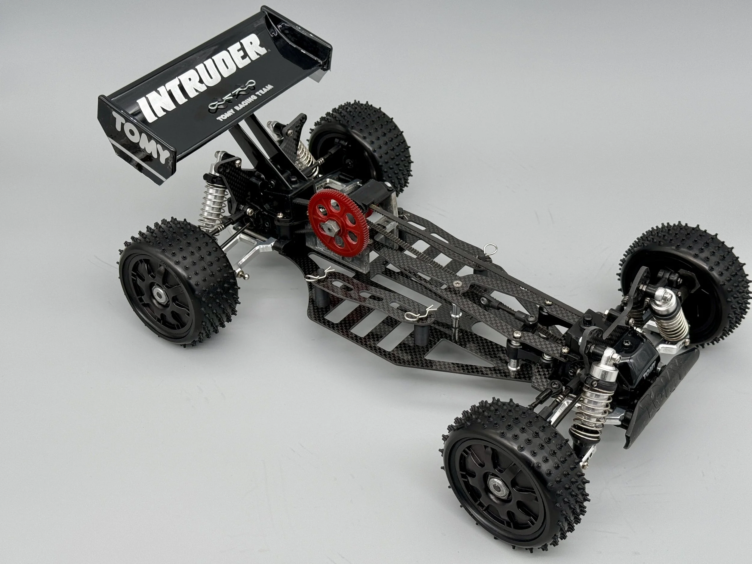This Intruder sports alloy arms and a special carbon chassis / top deck, which is a vast improvement from the original design and seems inspired from the later Yokomo designs.