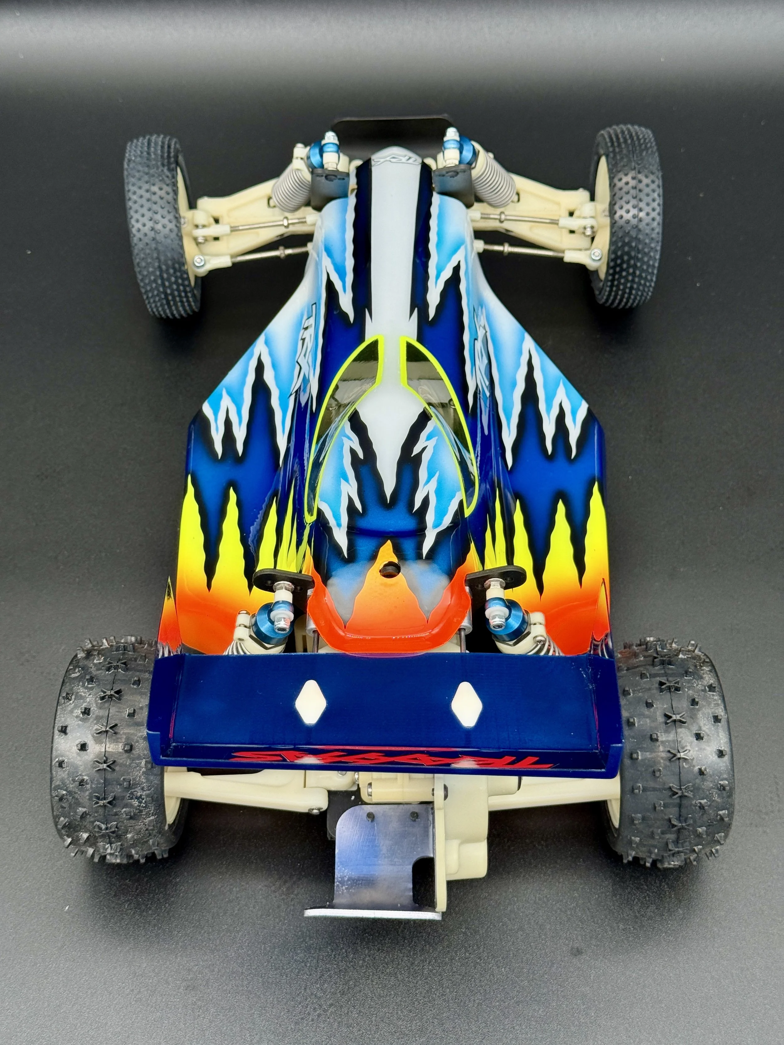 Gaphite chassis, alloy shocks and a futuristic body out of this world.